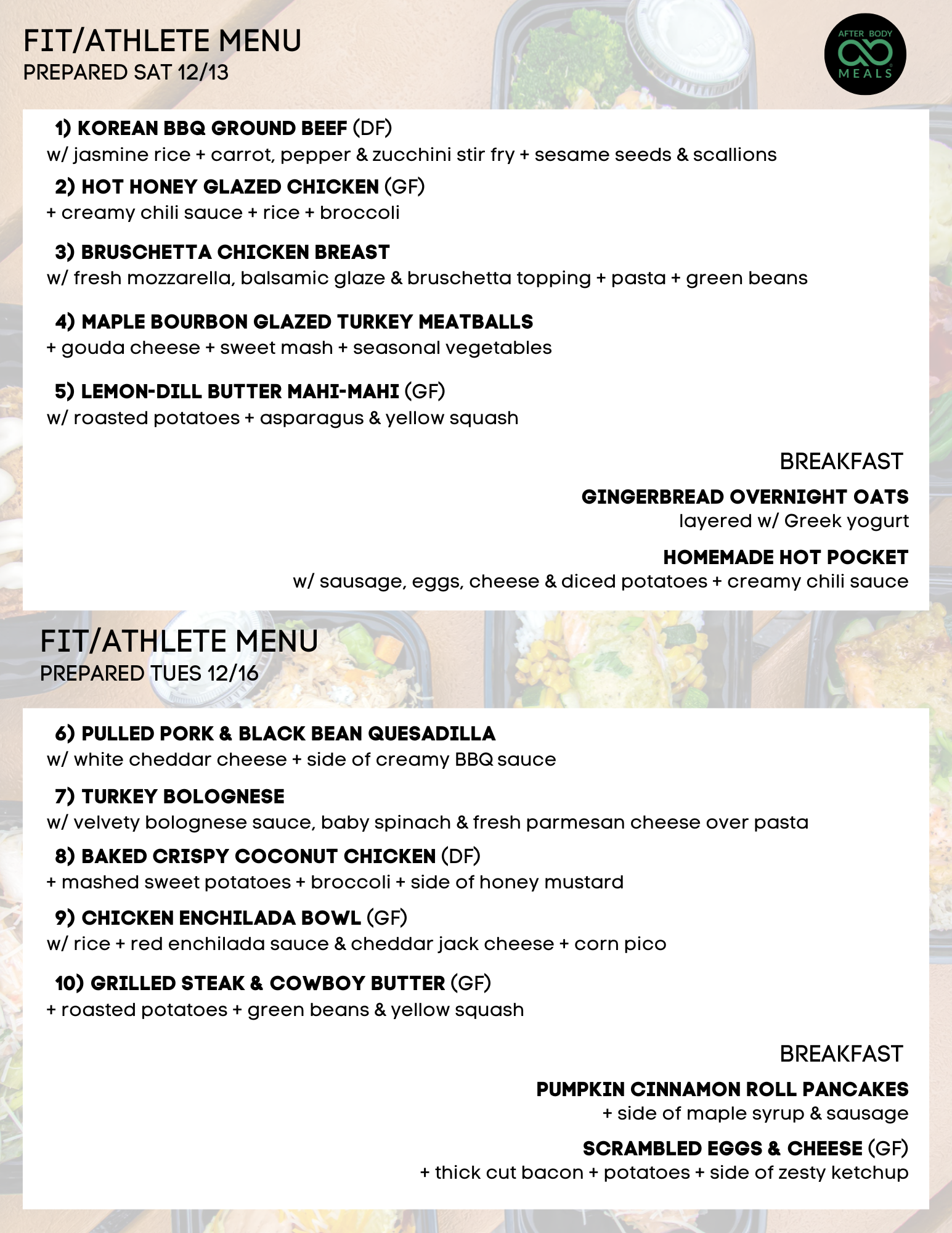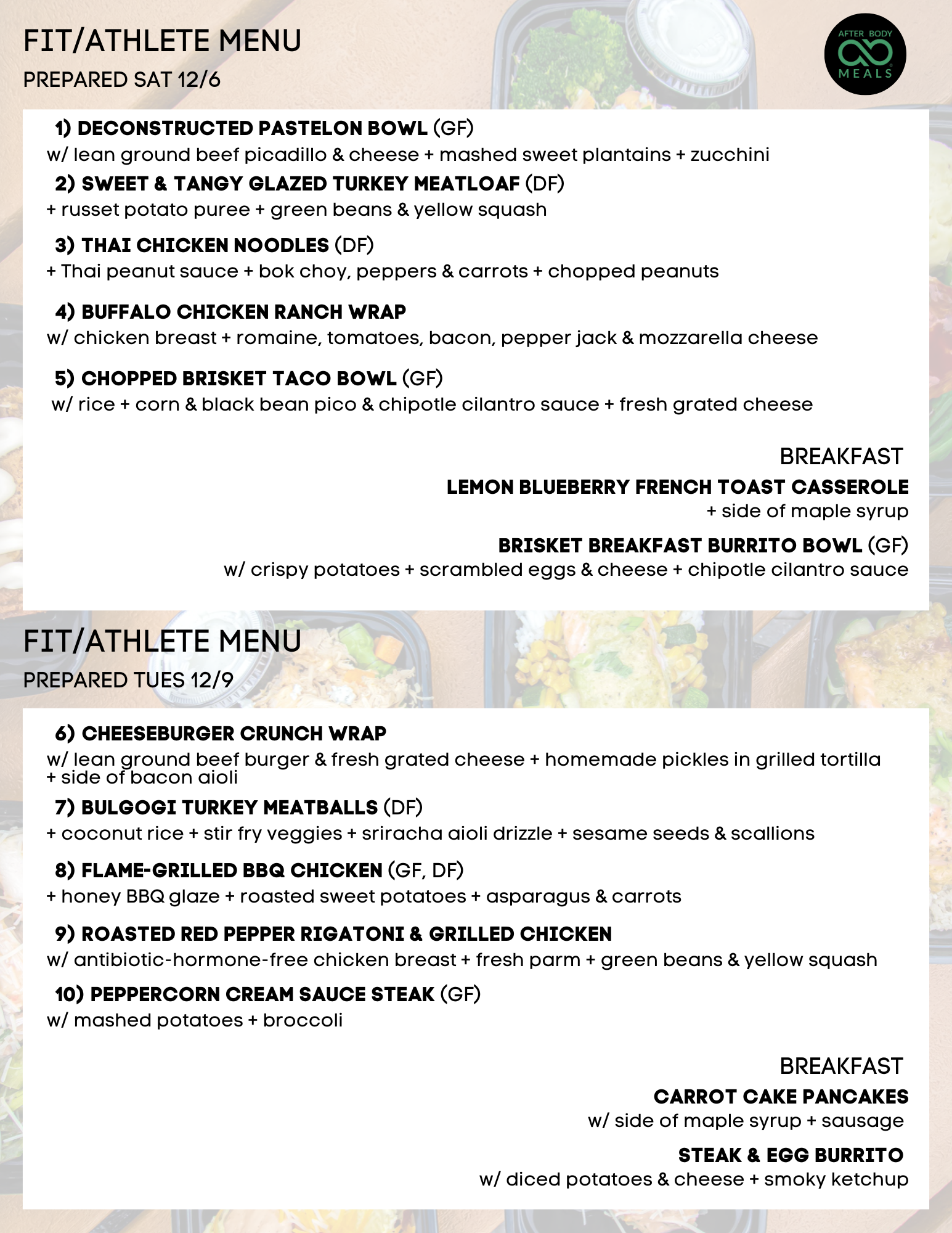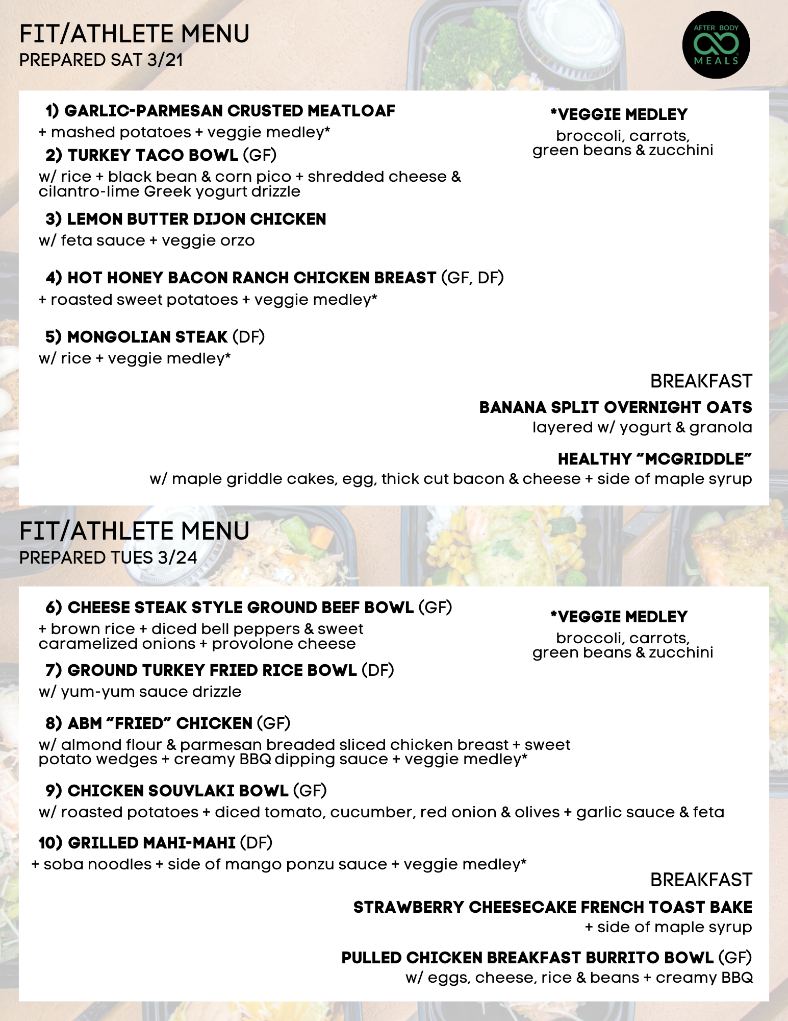 Order by 9 AM Monday for Wednesday’s meals (#6-10)