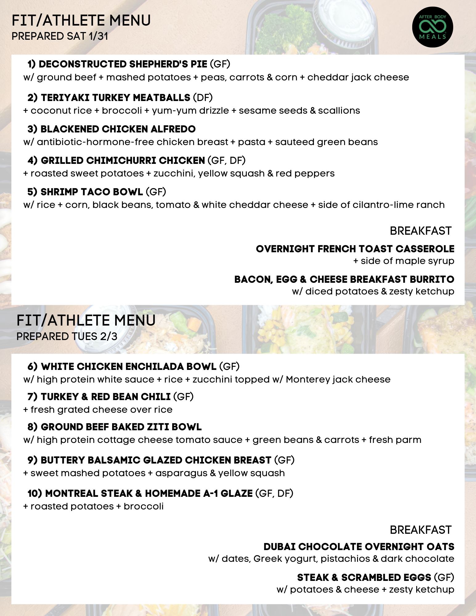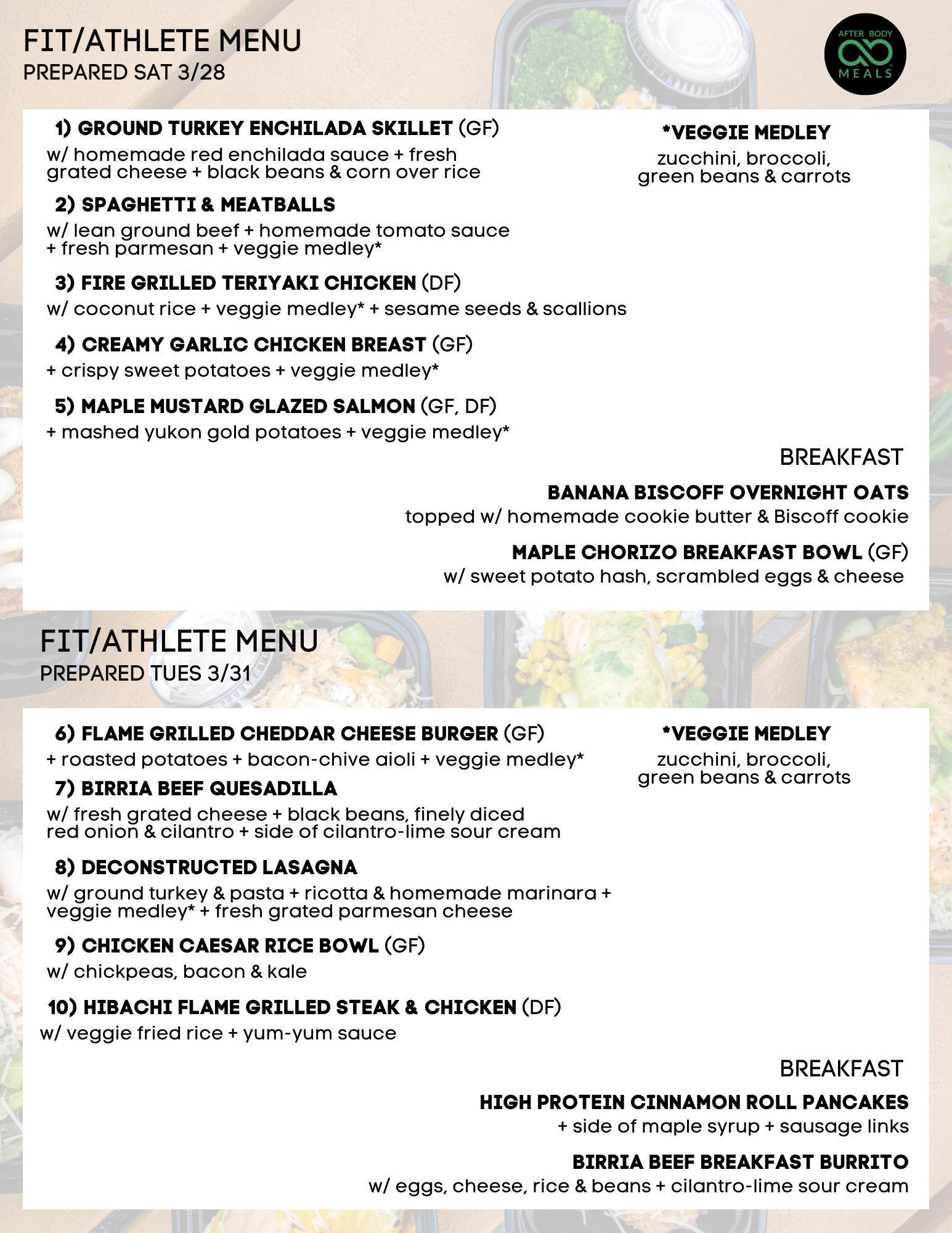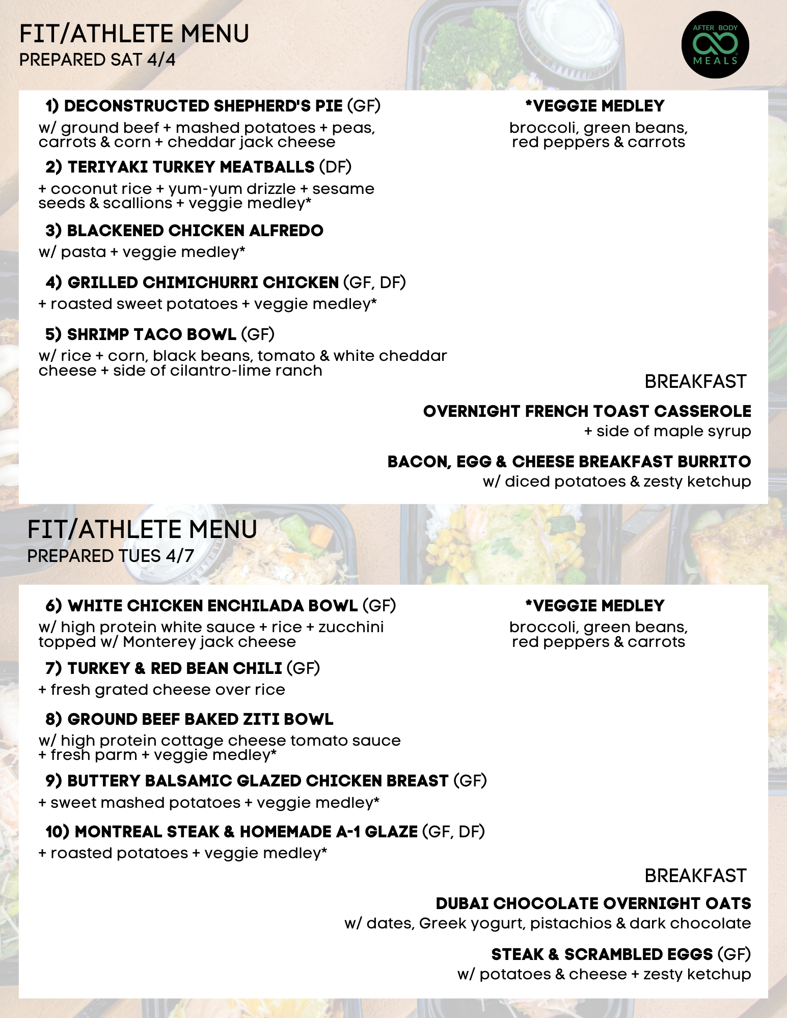 Order by 9 AM Monday for Wednesday’s meals (#6-10)